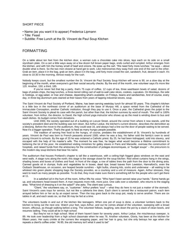 Frederica Lipmann discusses the tradition of serving food to the hungry and highlights the efforts made by the volunteers at the St. Vincent de Paul Society Soup Kitchen.
