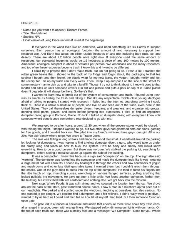 Richard Forbes discusses the lives of people who live freely off of the waste of others, based on his own experiences. Forbes speaks about dumpster diving for resources and the kinds of things he finds.