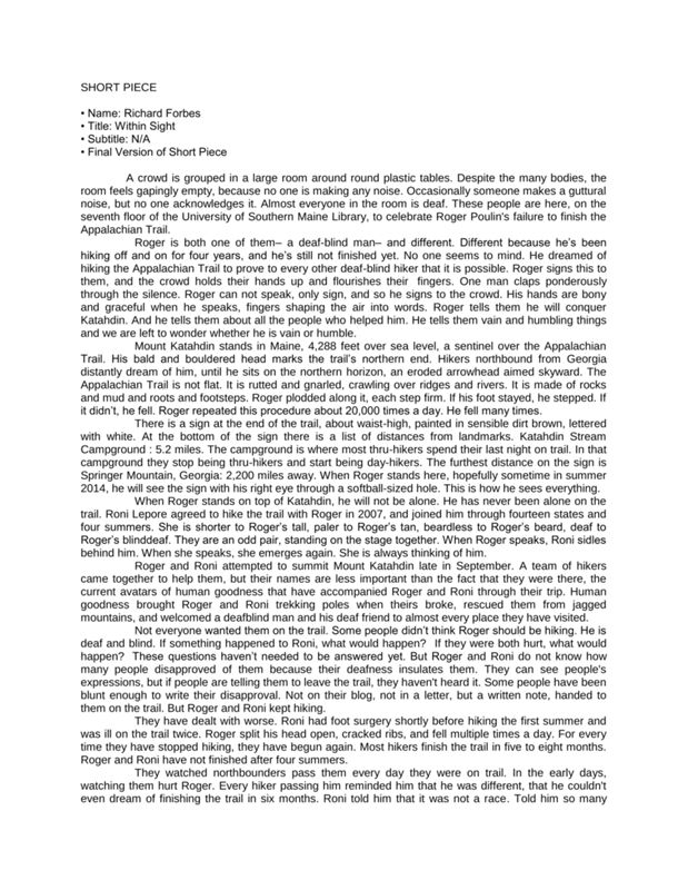 Roger Poulin has spent the past four summers hiking the Appalachian Trail, despite being deafblind. Richard Forbes highlights Poulin's memories of the trail and hiking despite his disability.