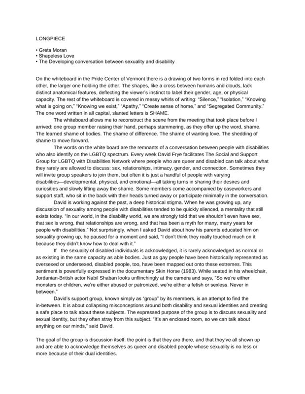 David Frye develops support groups for people with disabilities to discuss sexuality and intimacy, in an effort to stop the myth that people with disabilities should not have sex. Greta Moran documents Frye's efforts in Vermont with a support group of people who are queer and disabled.