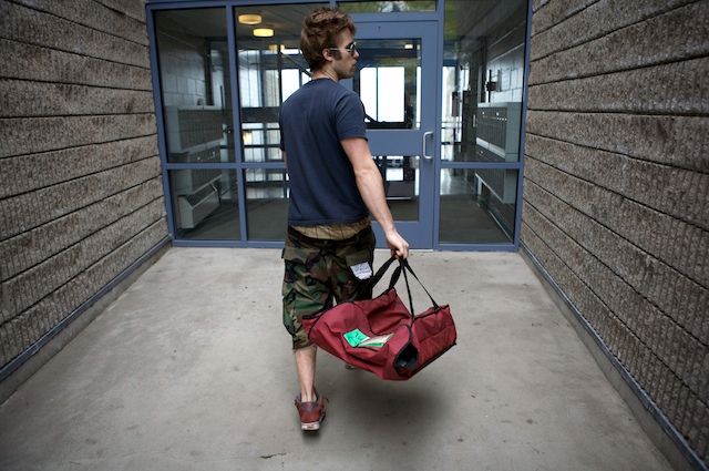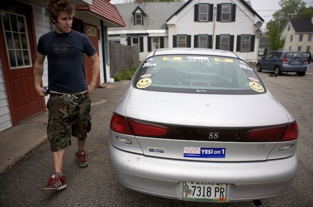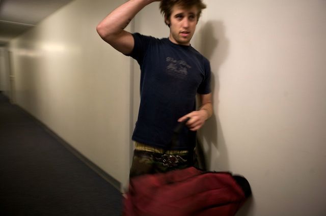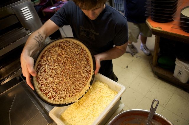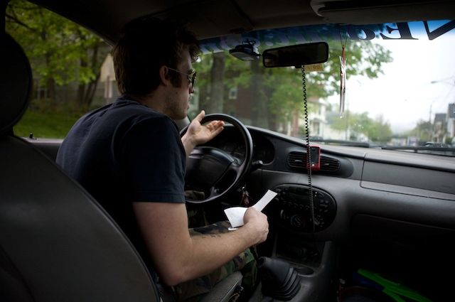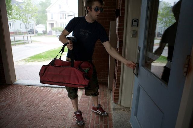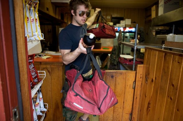 Rebeca Beeman captures the work Tom Witkowski does delivering pizza to customers.
