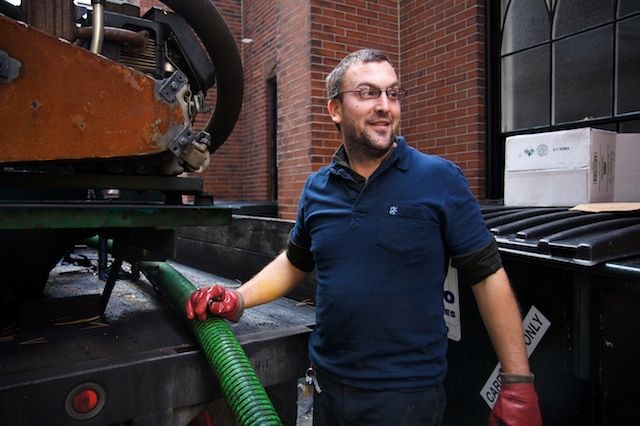 Driving around to locations in New England to collect grease waste, Maine Standard Biofuels turns used grease into biodiesel. Casey Gordon captures the work that Maine Standard Biofuels does to provide a local recycled fuel source.
