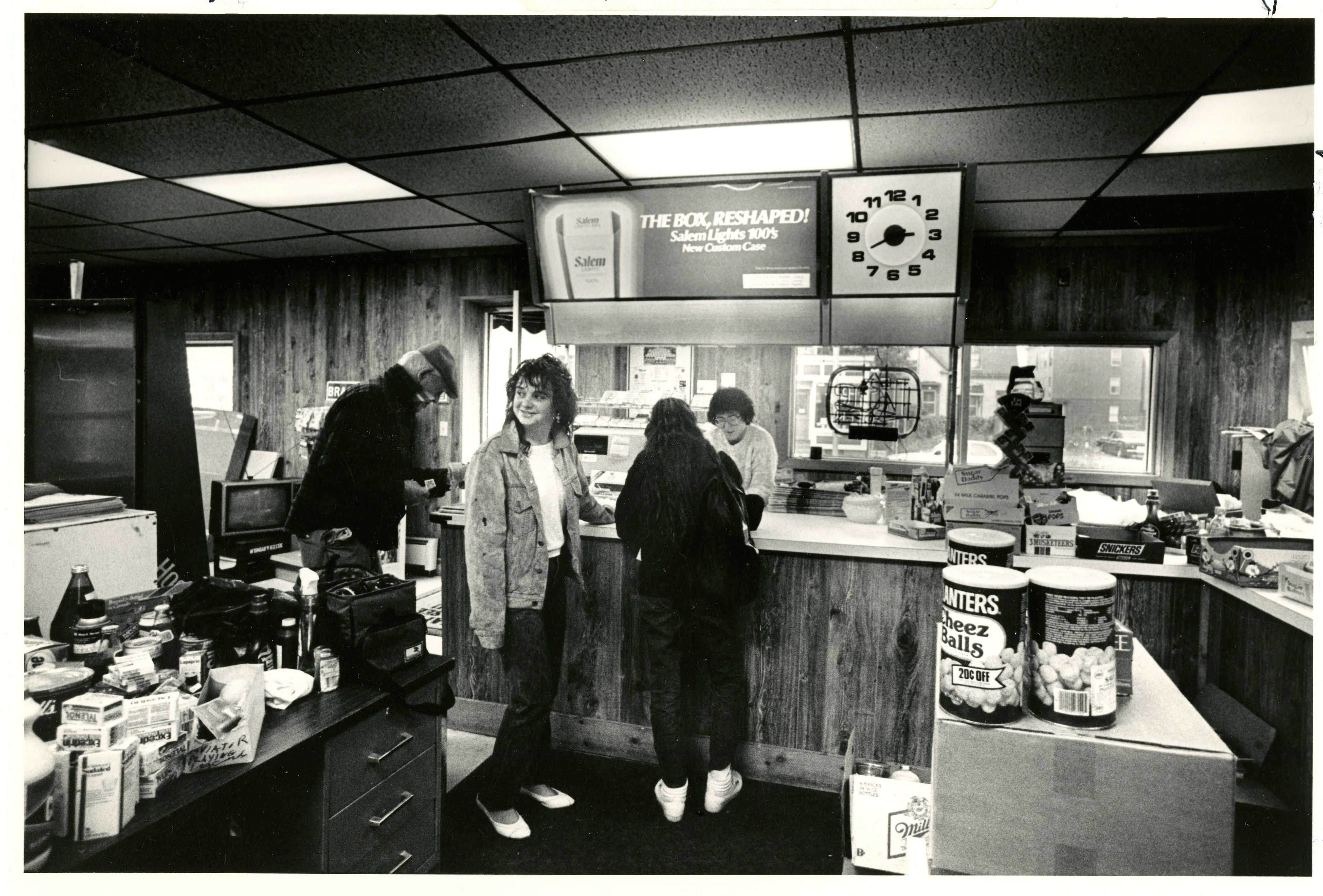 In order to get the latest gossip about what is going on around Munjoy Hill, people go to Renee's Variety Store in Portland. John G. Dale and Bonnie Bragdon travel to Renee's to get the latest news.