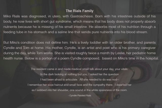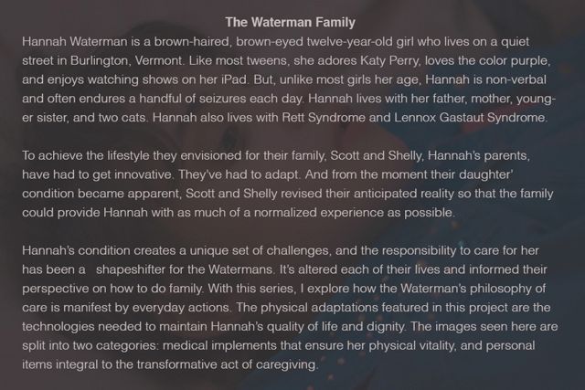 Lyndel Owens documents the work of three families who care for children with chronic conditions, and shows how they are forced to constantly adapt to new situations.