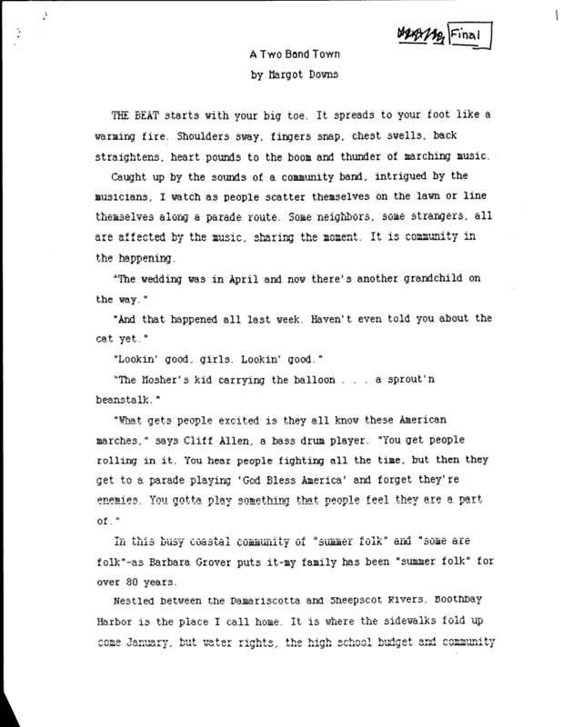 Margot Downs highlights the stories and activities of serveral community bands, speaking with band members and the community.
