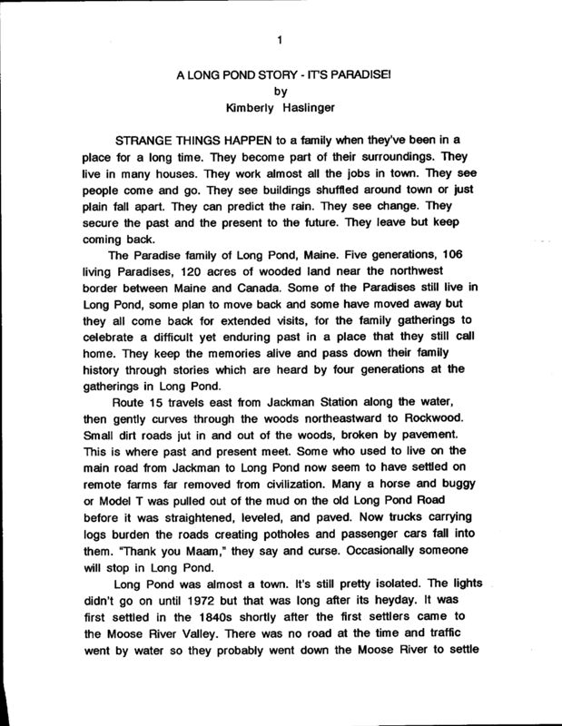 Kimberly Hasling discusses the history of the Paradise family, while also covering local history on Long Pond. She talks to family members regarding their family stories and their ways of life, uncovering how a family became engrained to the place where they lived.