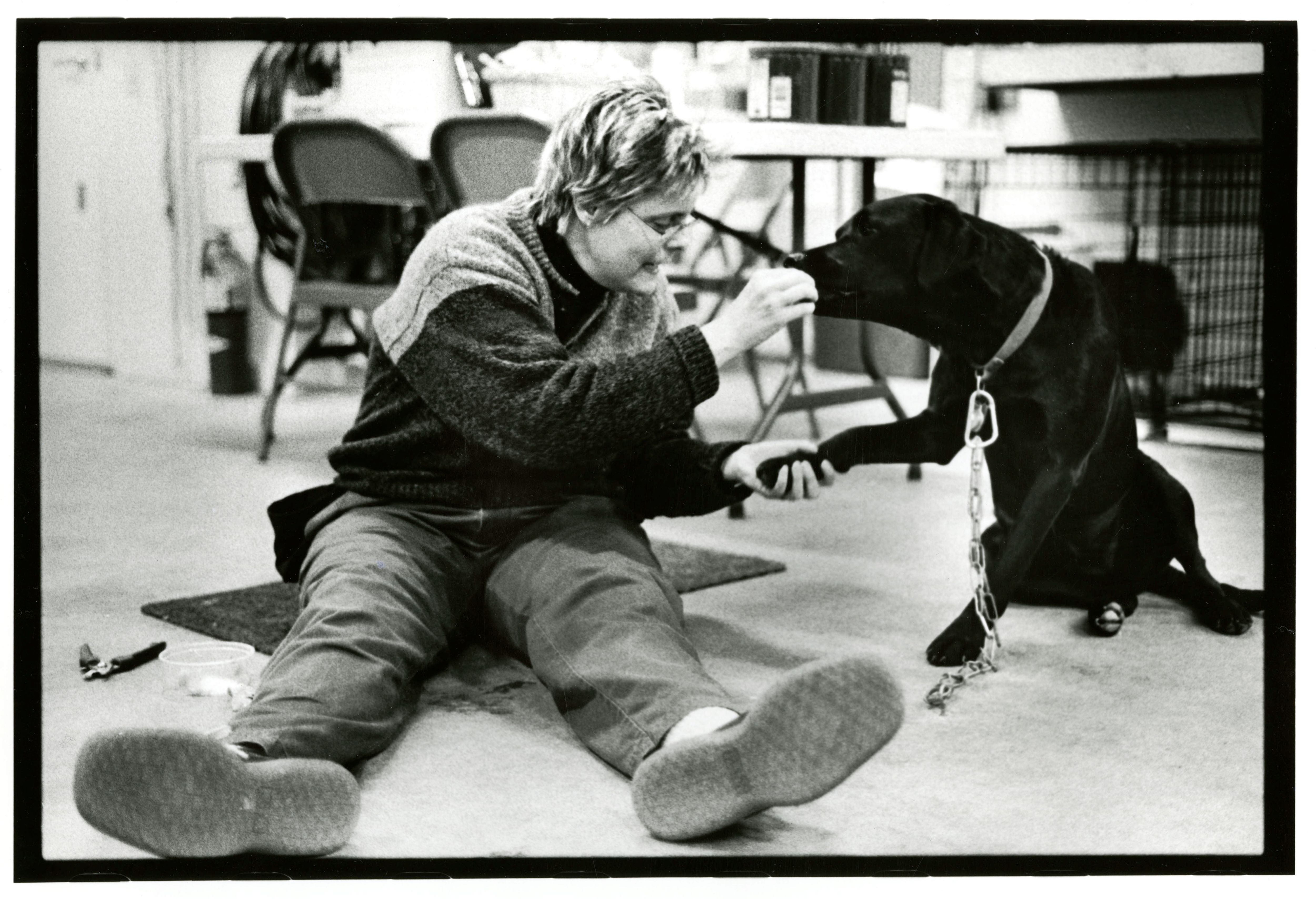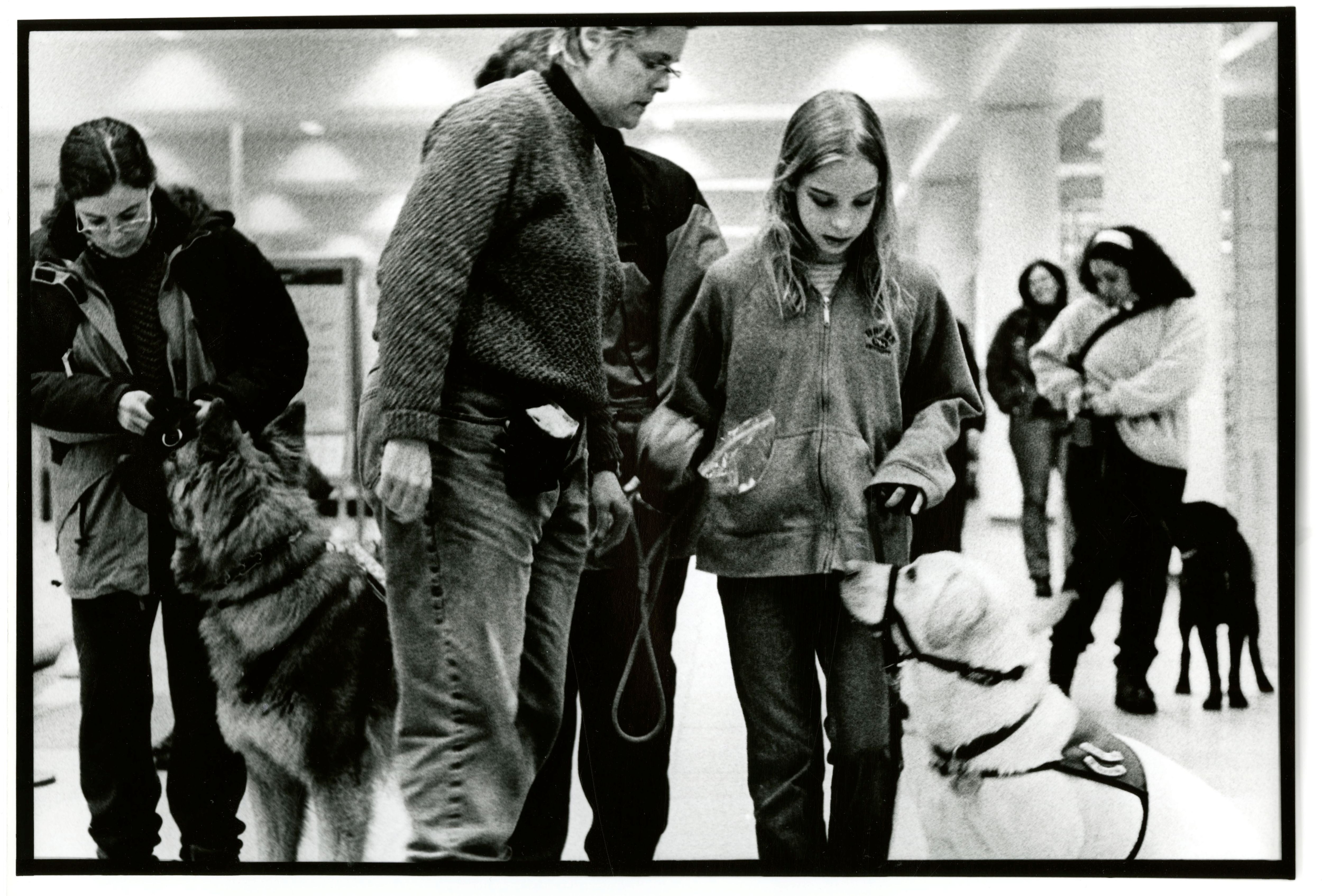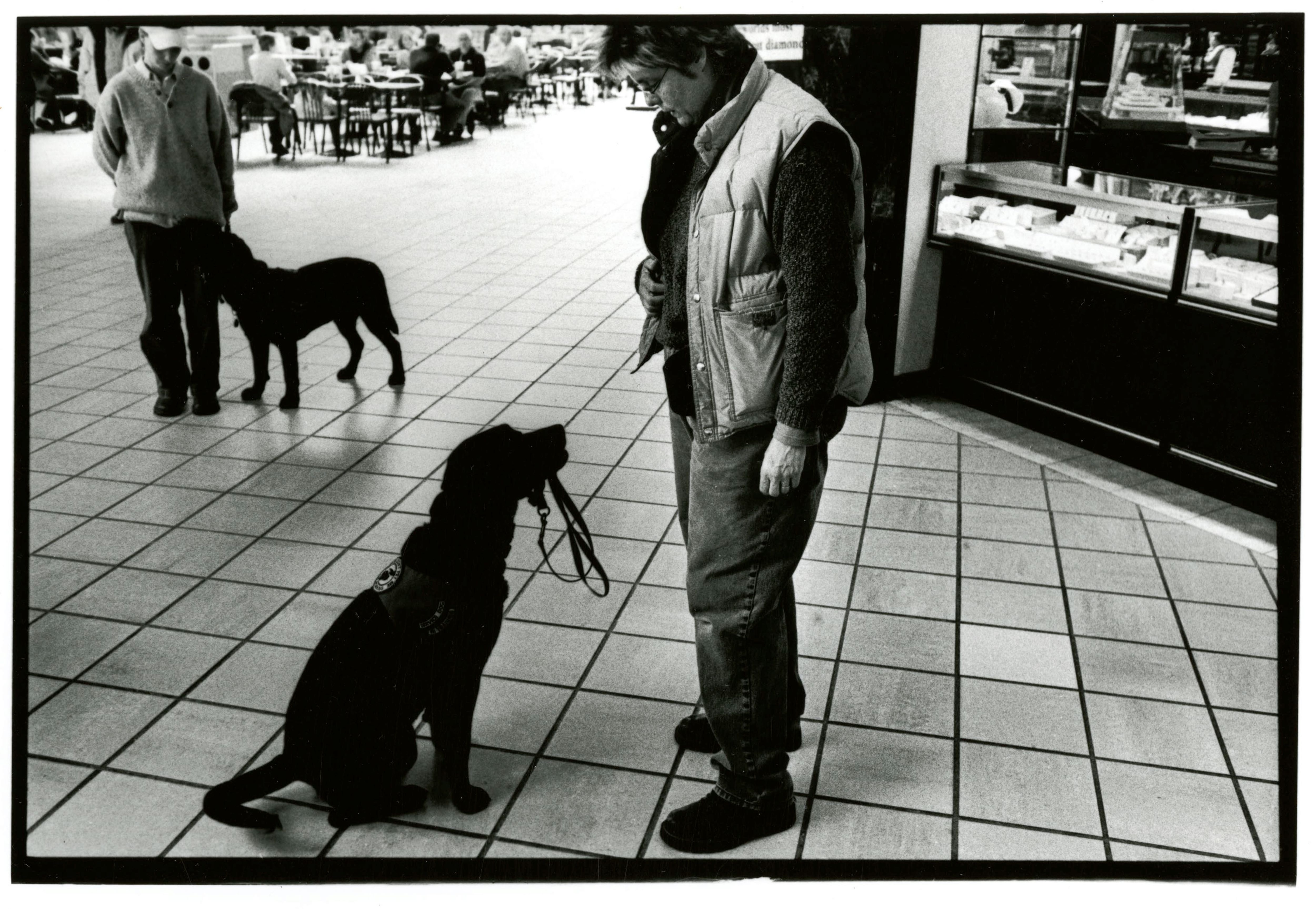 Randall Green and Amanda Goldblatt speak to individuals regarding service animals and animal training.