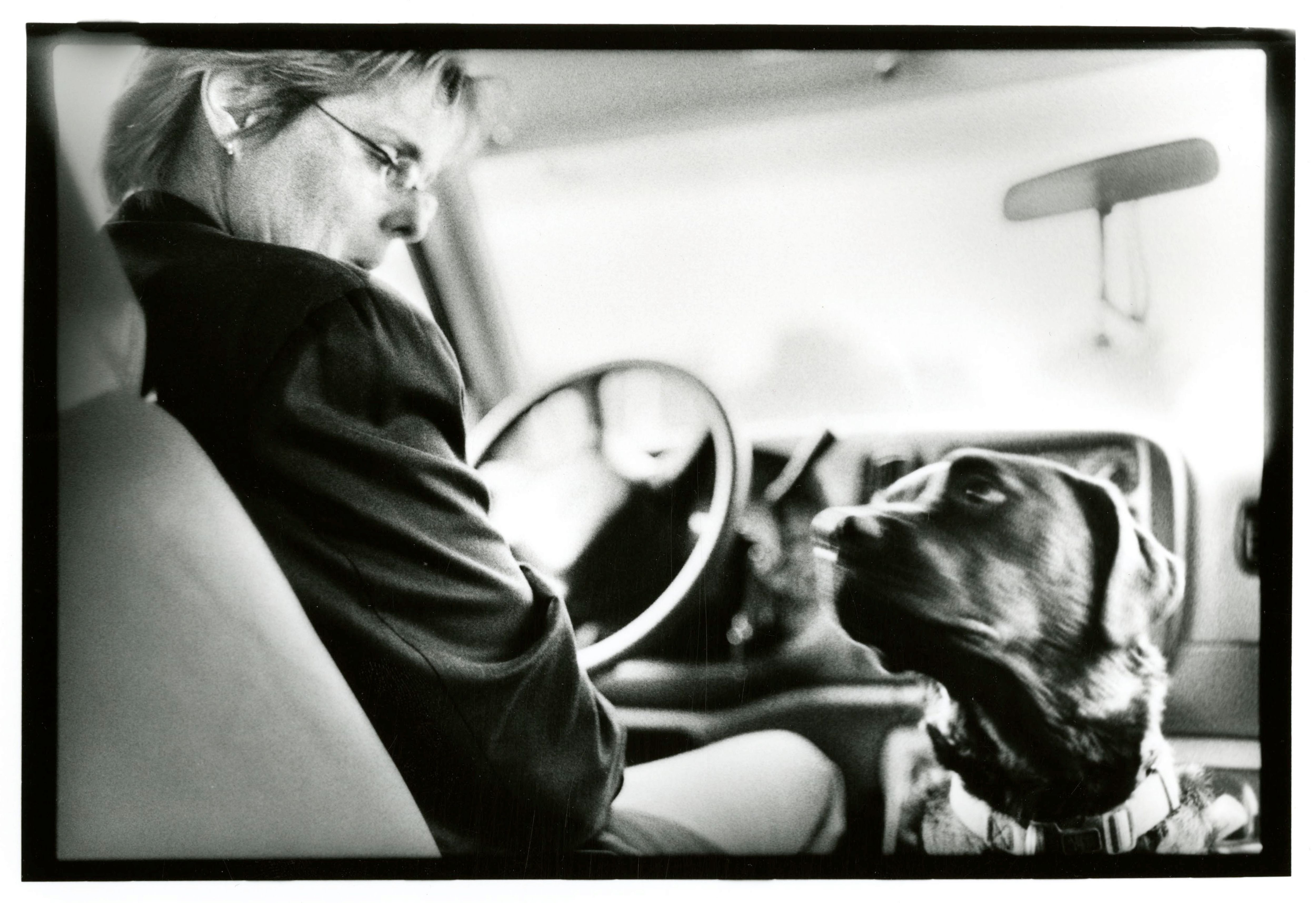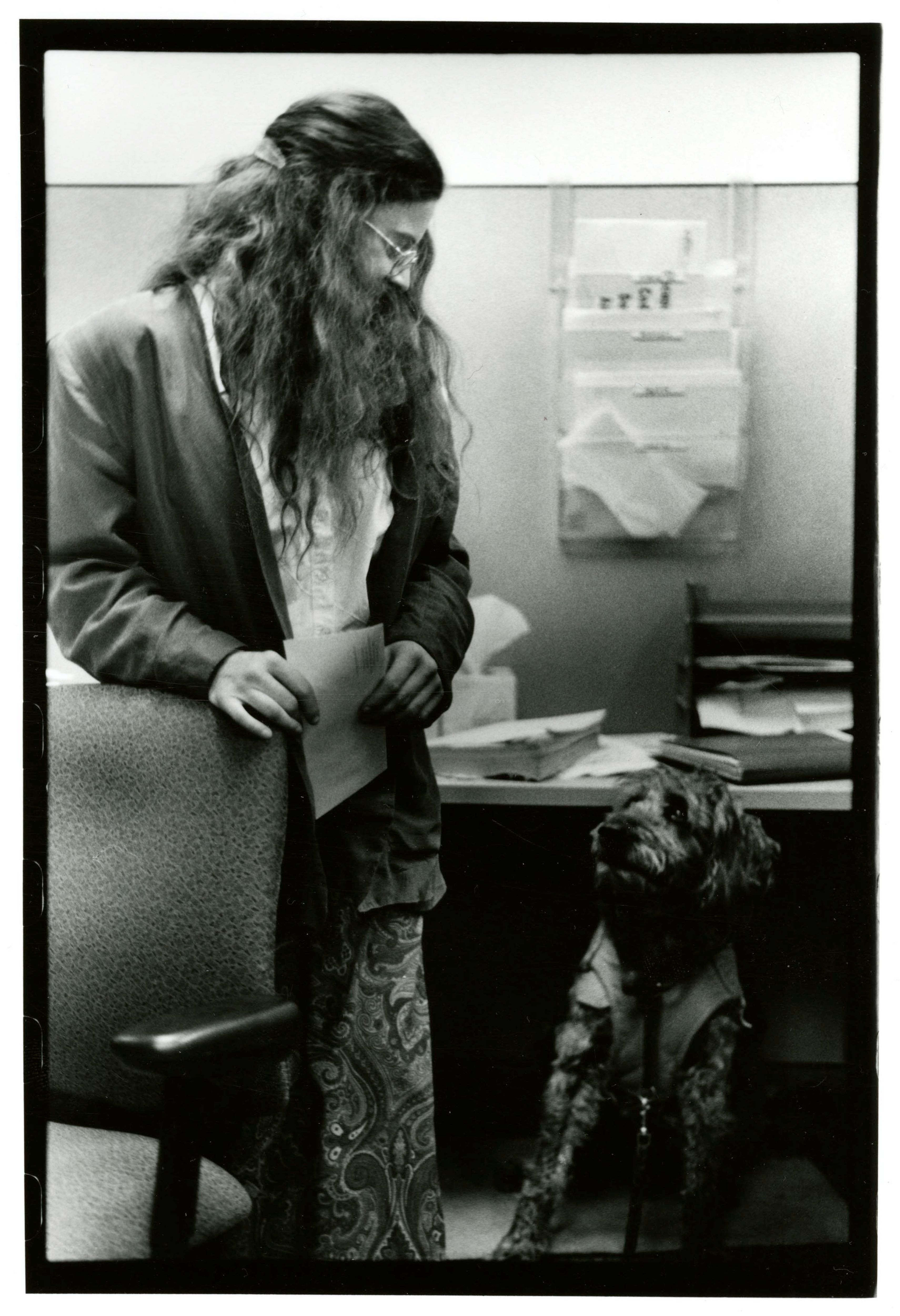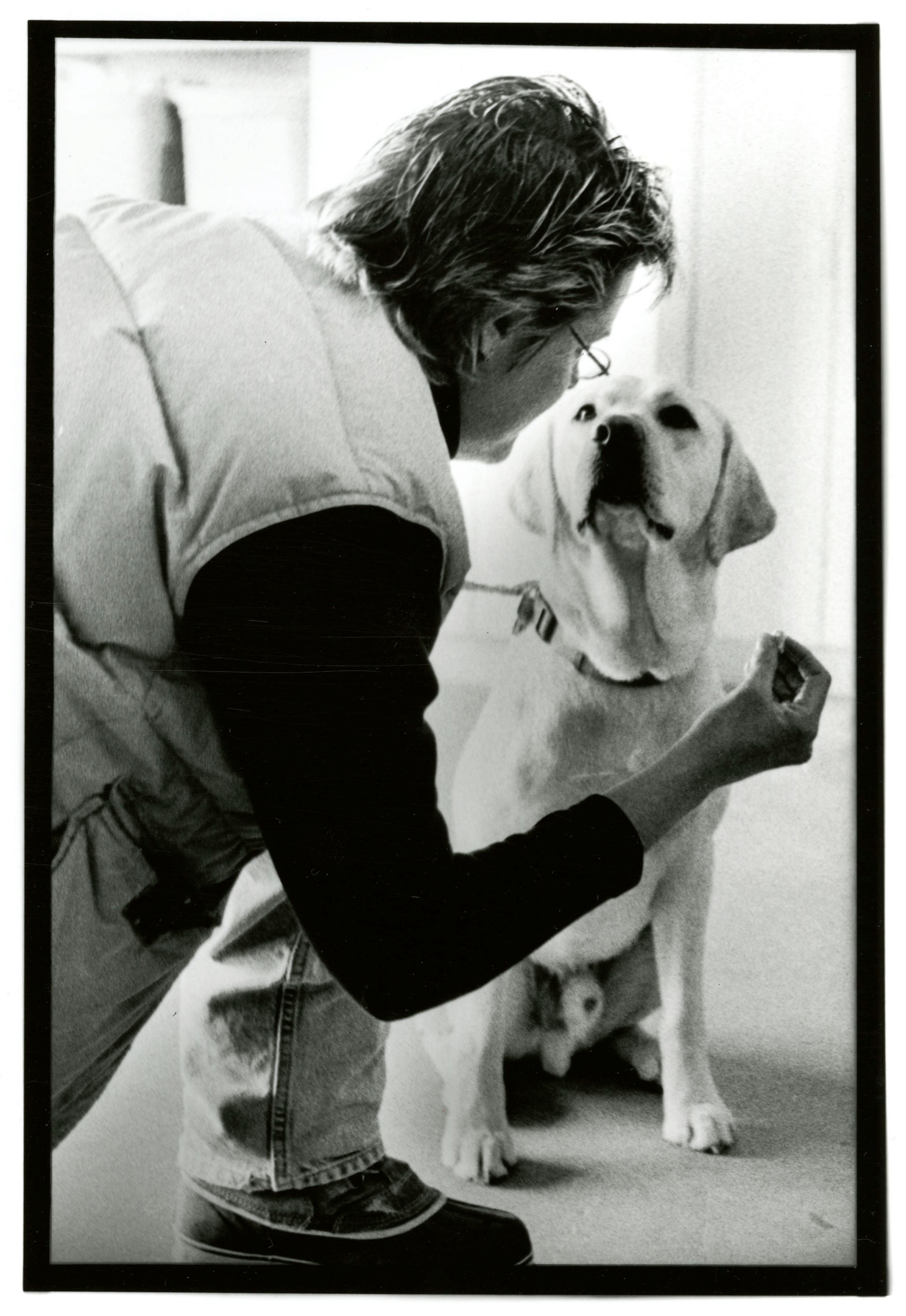Randall Green and Amanda Goldblatt speak to individuals regarding service animals and animal training.