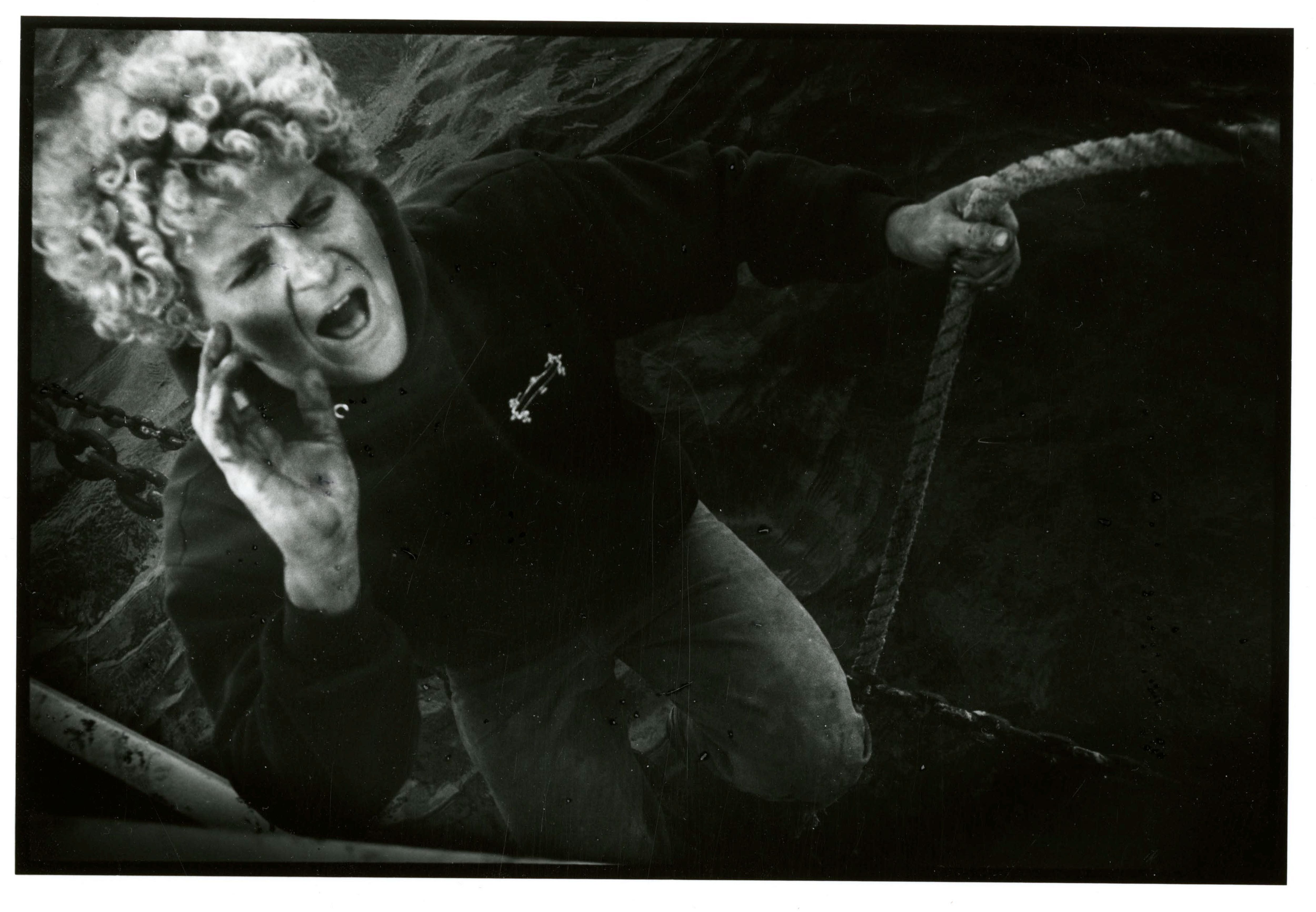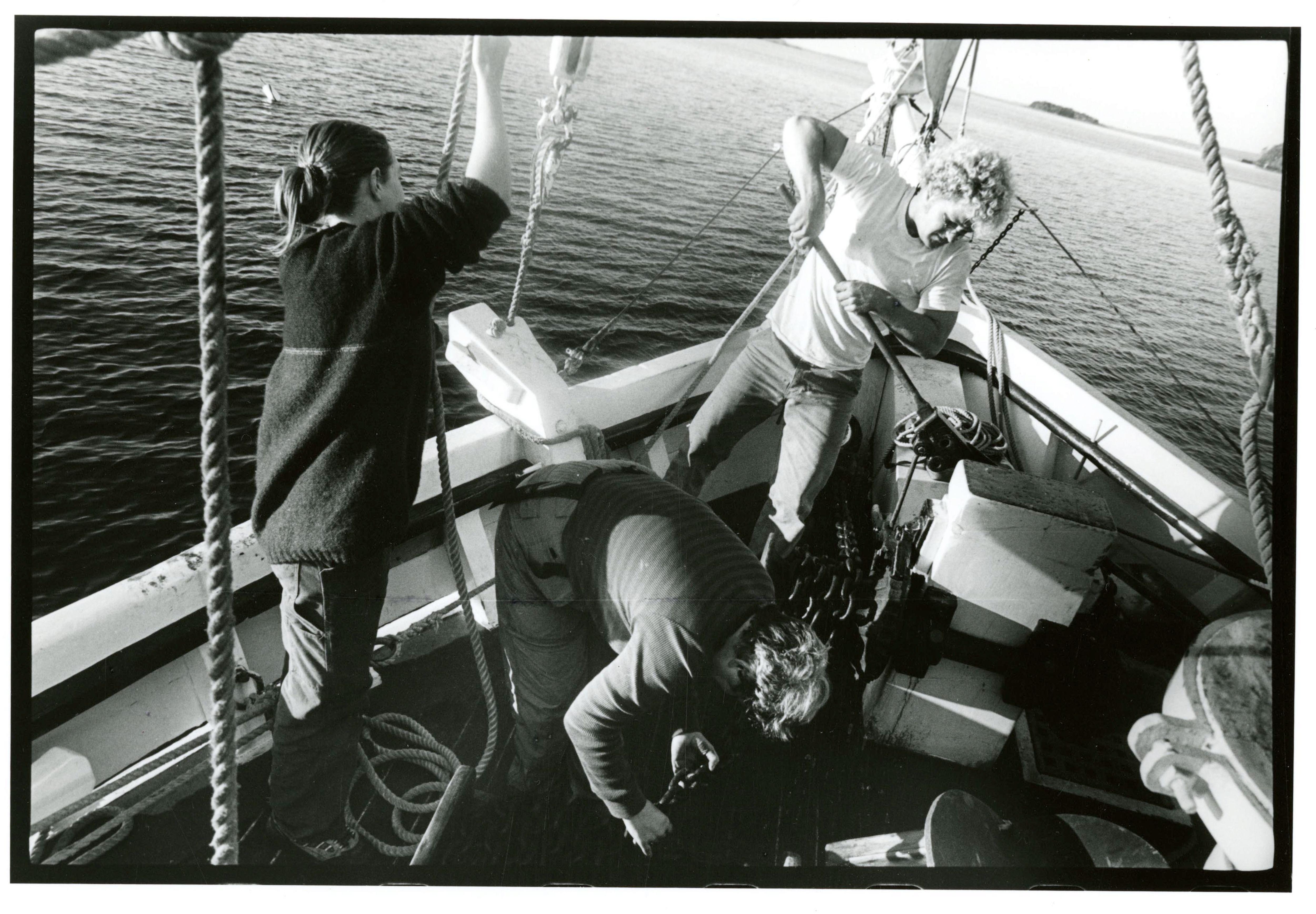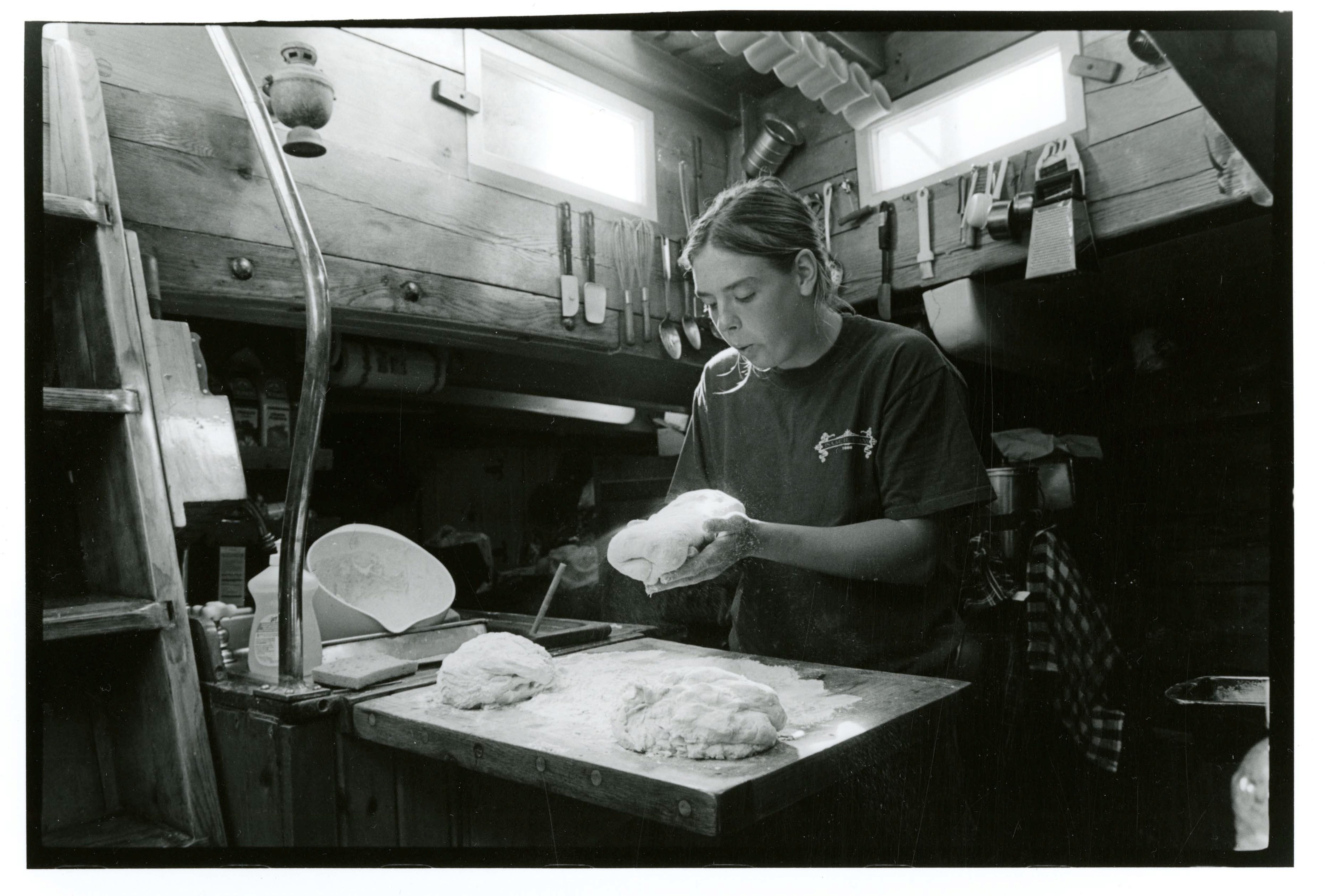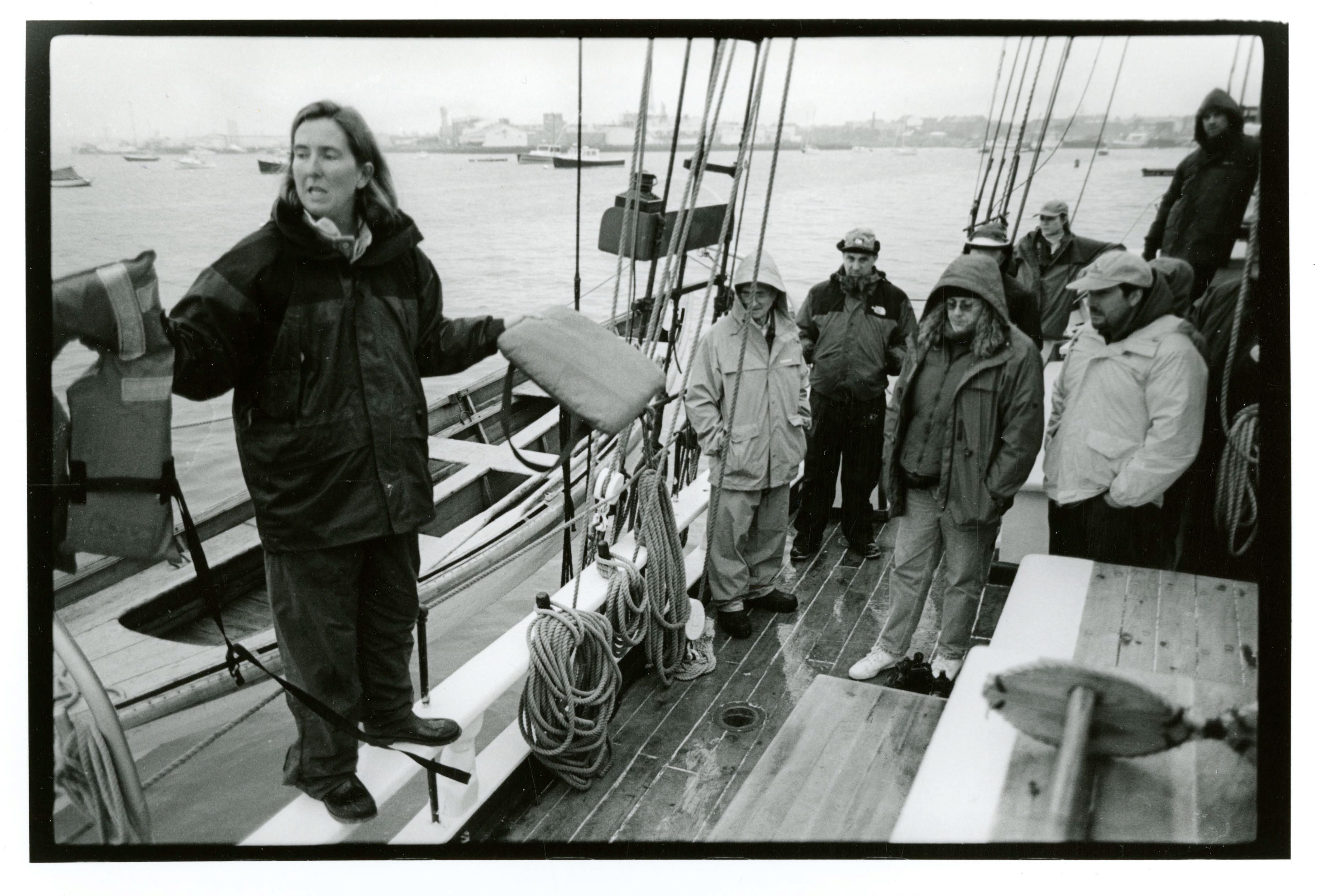 Megan August Dalrymple captures images on the passenger schooner, the Isaac H. Evans.