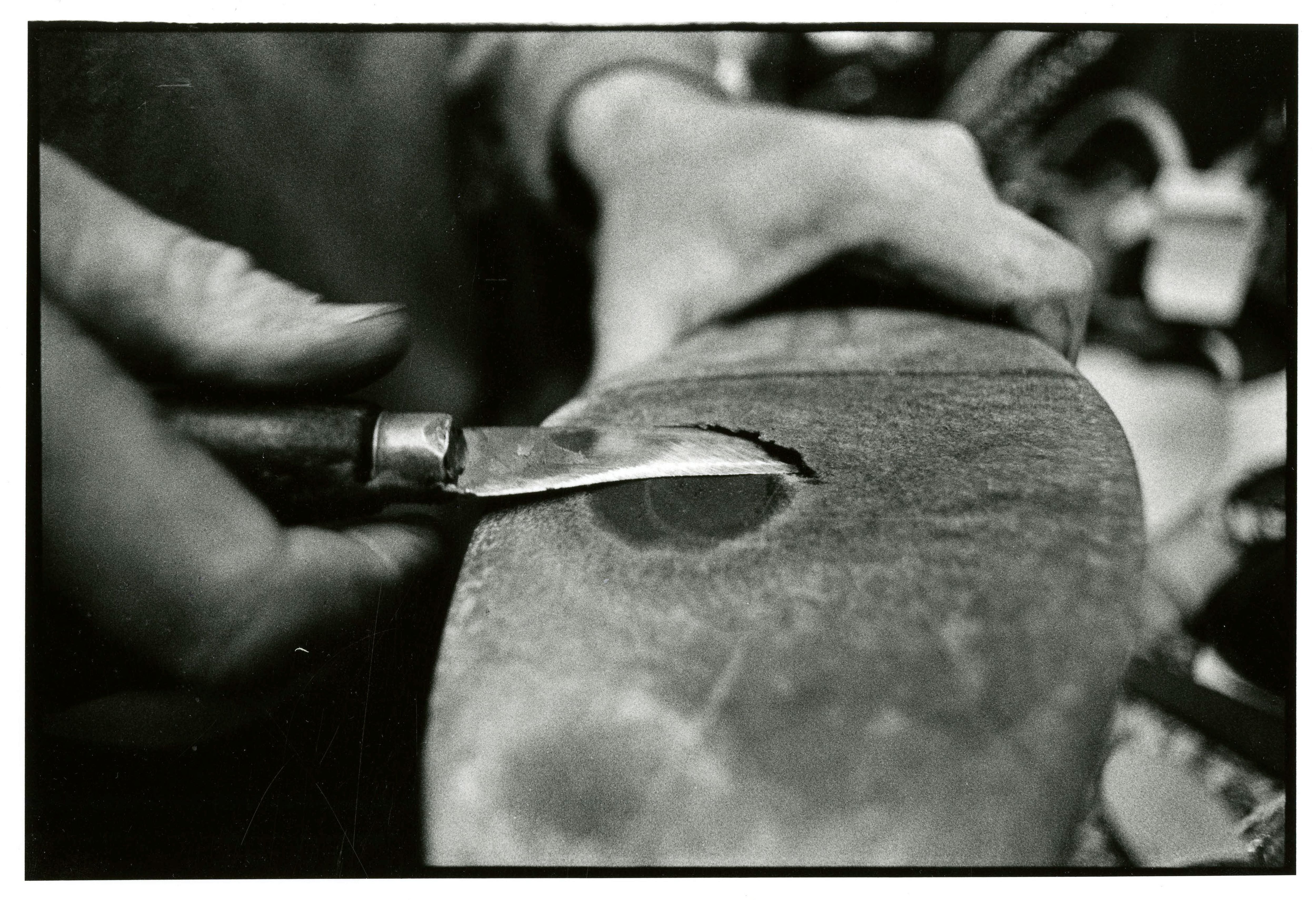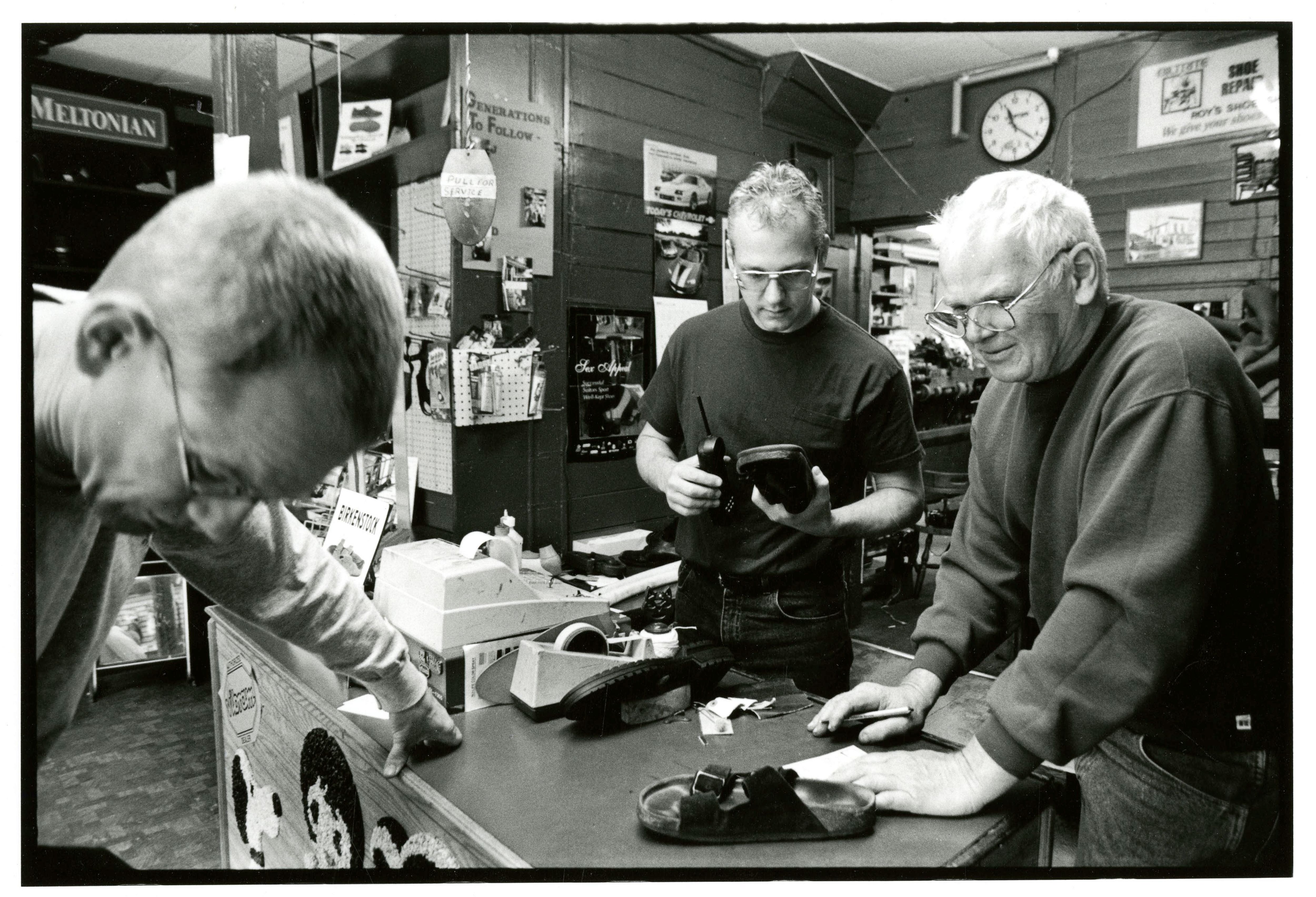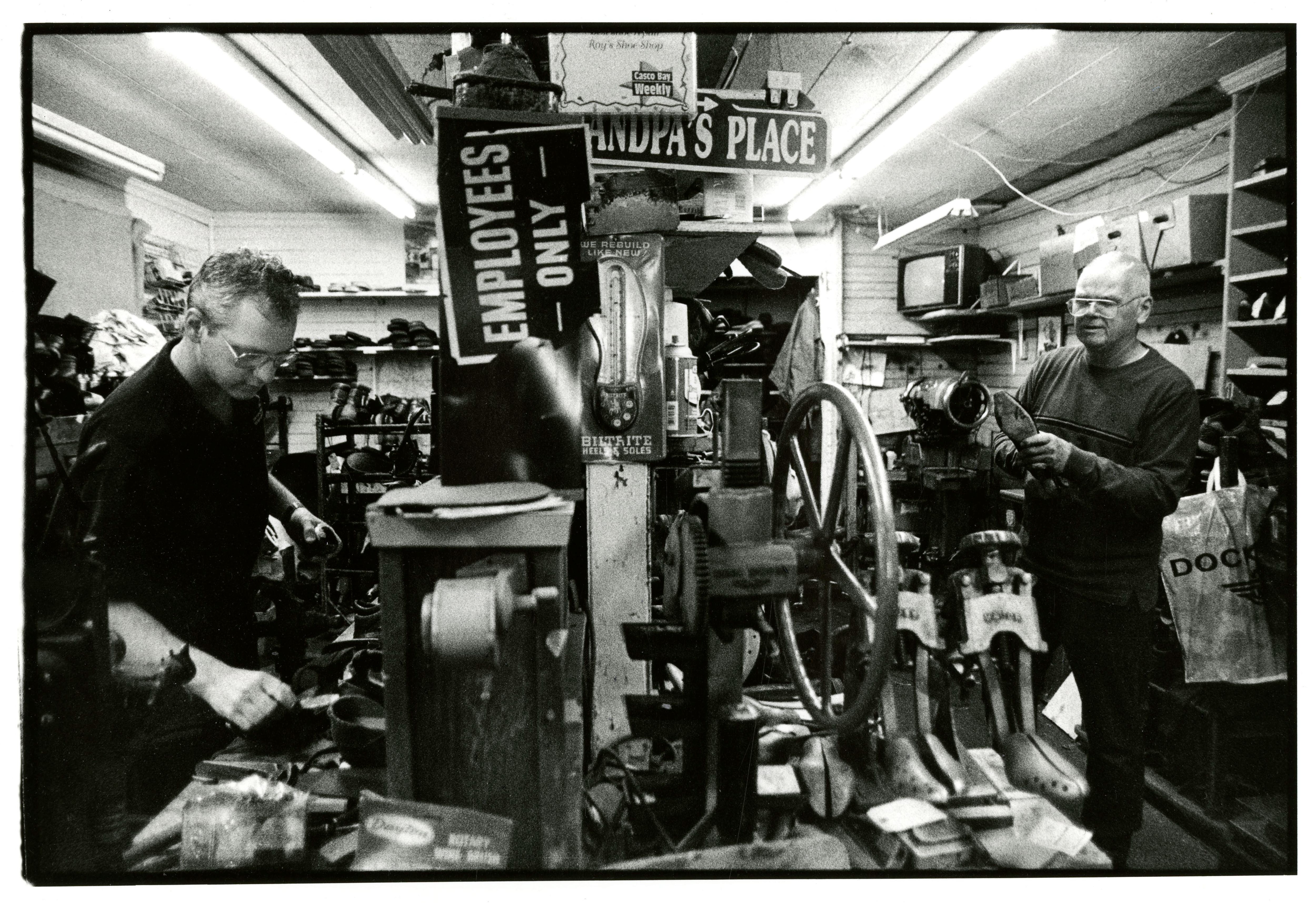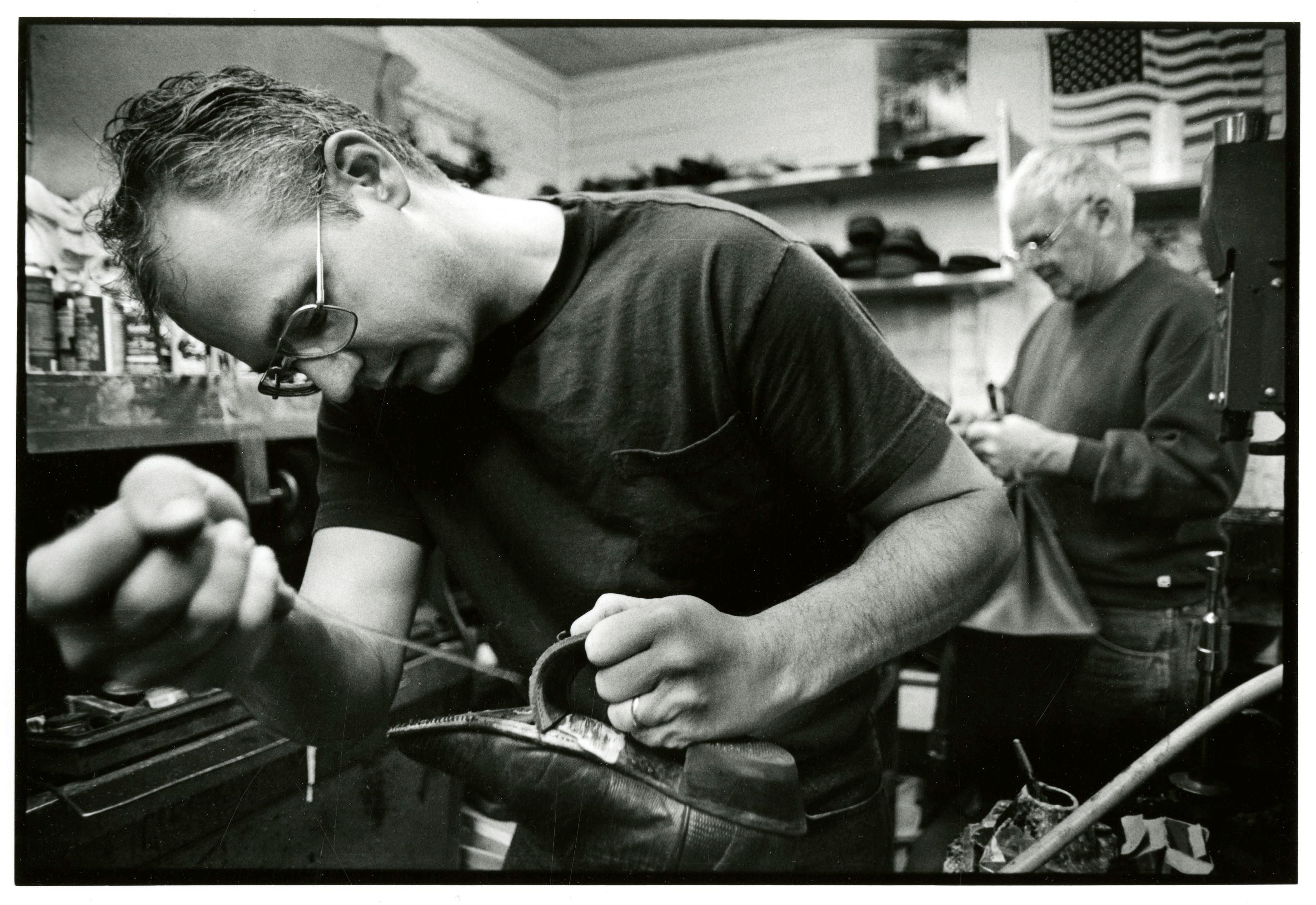 Allison Wightman documents the work done by Dan Lentz at Roy's Shoes in Portland, highlighting his profession as a cobbler.