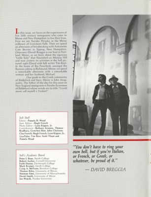 Inside front cover for the July 1984 Salt Magazine, with issue information.