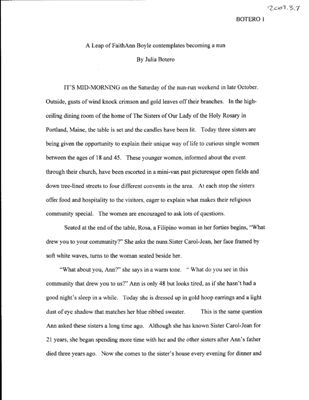 A Leap of Faith: Ann Boyle Contemplates Becoming a Nun
