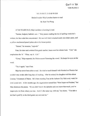 In Maine, nearly one out of every six adults function at the lowest level of literacy. Kate Van Ploeg speaks to Skip Larrabee, a retired truck driver, who is currently learning to read, and discusses how he has coped with illiteracy.