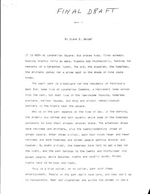 A small park located in Portland's West End, Longfellow Square sees a variety of individuals on the grounds. Diane Geiger speaks with park visitors to learn their stories.