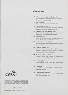 Table of contents for April 1974 Salt Magazine.
