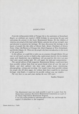 Dedication page for the June 1976 Bicentennial Salt Magazine.