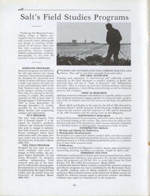 October 1986 Salt Magazine, Salt Field Studies Programs