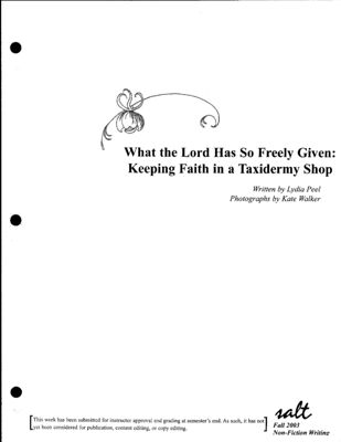 What The Lord Has So Freely Given: Keeping Faith in a Taxidermy Shop