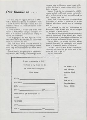 January 1974 Salt Magazine, Thank You Page