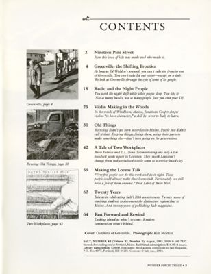 Table of contents for August 1993 Salt Magazine.