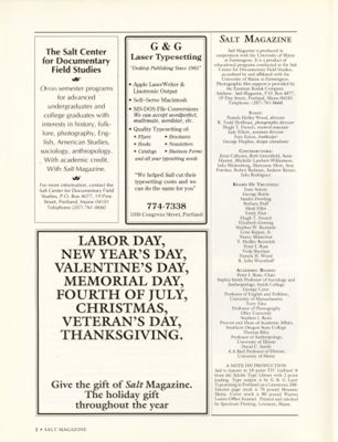 Inside back cover for the August 1993 Salt Magazine, with an advertisement for the Salt Semester Program.