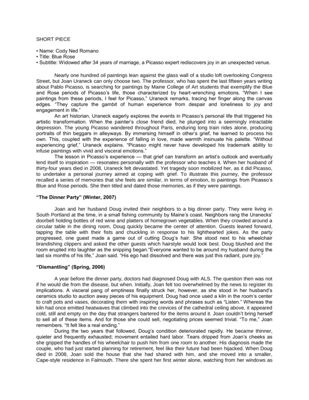 Following the death of her husband, art history professor Joan Uraneck took a personal journey aimed at coping with grief. Cody Romano highlights how Uraneck recalled memories that she could relate to paintings from Picasso's Blue and Rose periods, which allowed her to illustrate her journey as if they were paintings.
