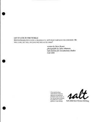 Let It Live in the World: Dexter Kamilewicz Runs A Grassroots, Anti-War Campaign for Congress