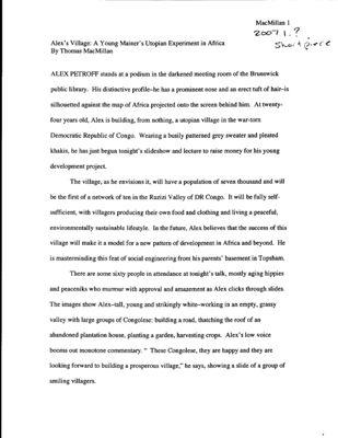 Alex's Village: A Young Mainer's Utopian Experiment in Africa