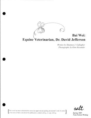 Bai Wei: Equine Veterinarian Dr. David Jefferson